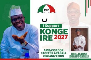 The ibadan south East Constituency1 House of Assembly Aspirant Hon. Alatise Dolapo, has called on party faithful and stakeholders across the local government to rally behind Ambassador Taofeek Arapaja (KONGE IRÉ) in his quest to become the Executive Governor of Oyo State come 2027.