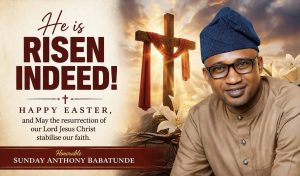 Ibadan South East Local Government Chairman hopeful, Hon. Sunday Babatunde has extended warm felicitations to Christians across Nigeria on the occasion of the Easter celebration.